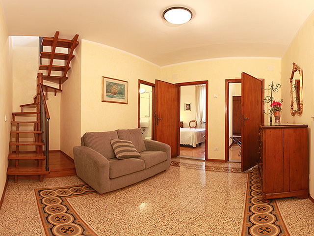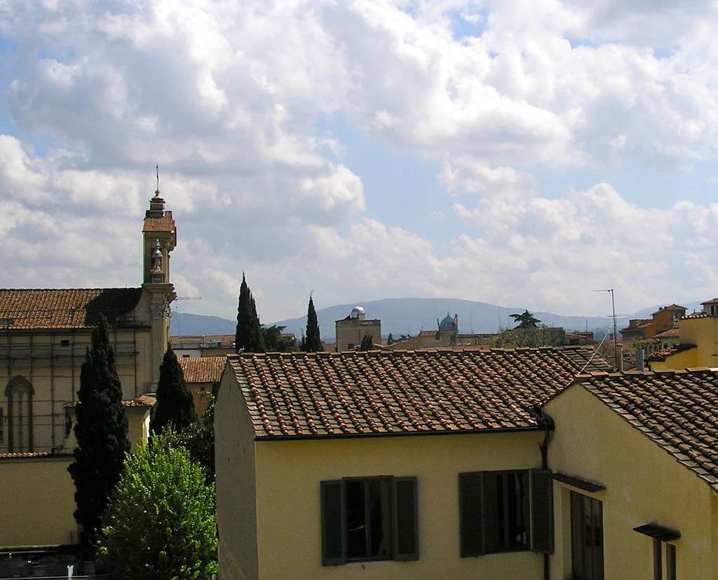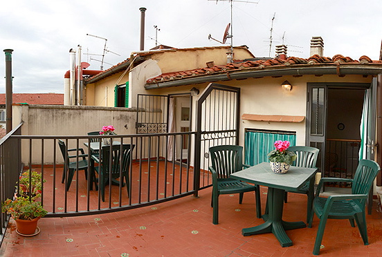 On the same level (third floor) as San Marco this is another two bedrooms and two baths flat in the heart of Florence. The apartment is fully furnished and equipped with all the conveniences of home, bright and comfortable. You enter on the lower floor living room where you have access to the bedrooms, the matrimonial bedroom has bathroom right outside with access from the living room, the single room where you can have one extra bed has ensuite bathroom. You access upstairs through a wooden staircase to the kitchen/dining room and the terrace.