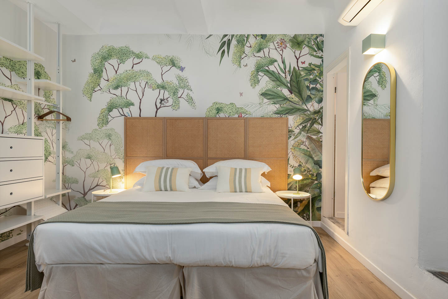The apartment comes fully equipped with updated decor and all the essentials of home. Whip up everything from walking tour snacks to family style feasts the mighty full kitchen and dine together at the table set for six, indoor or outdoor. A 50” flat screen smart TV and sofa in the living room set the stage for casual downtime after the day’s adventures. The master bedroom includes a private en suite. The other twin bedroom shares the bathroom with the studio room. Additional perks include individual air-conditioning, free superfast WiFi with fiber, a dishwasher and a private washer.
