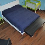 It has 1 kitchen with a confortable cooking area and storage, 1 bathroom (limited space, but well organized, with a large shower and design oriented), two spacious double rooms, one of which can be either used as a bedroom or living room. One has a Kig Size bed with a cot and very large storage. The second room (living/bed) has a sofa double bed, storage and bookshelf, desk, plus a children area.