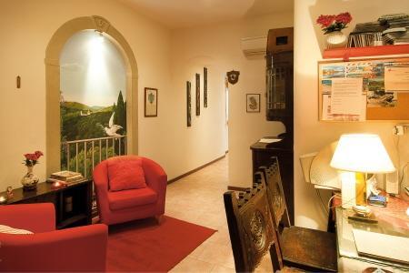 Ciclamino. Romantic and cozy, this unit enjoys the view of a quiet garden.The apartment consists of entry, living room with double sofa bed, balcony, breakfast nook, fully equipped kitchen, attic open space with double bed. The aparment can host up to 4 guests. Linens and towels are included. Cleaning is not included on the price. Final cleaning has an extra charge of �40,00 always. Check in until 18:00h.