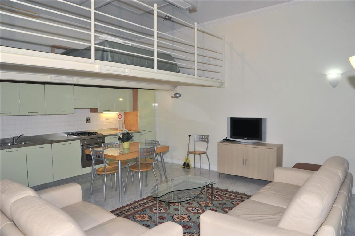 Peaceful and relaxing, this spacious apartment overlooks Via Cavour. The entryway opens up to a wide living room with a double sofa bed and a sofa twice place, breakfast nook, fully equipped kitchen, attic with queen size bed and decorated bath with tub. The apartment, equipped with all amenities, can host up to 4 guests. Linens and towels are included.