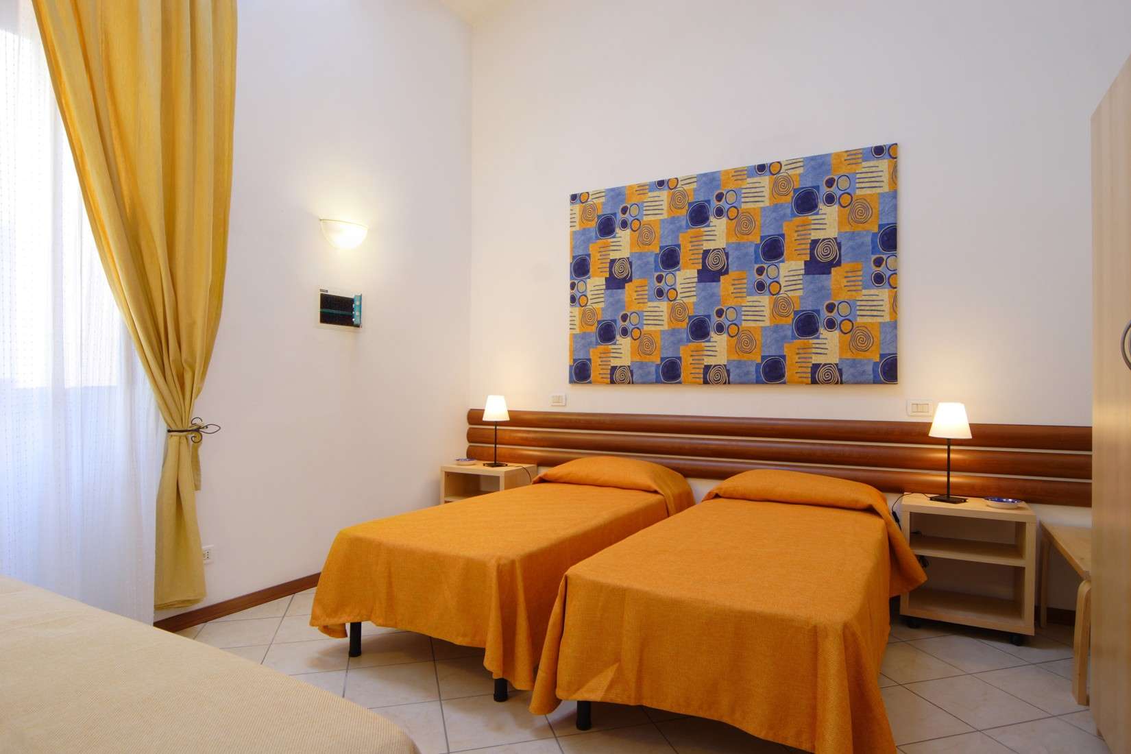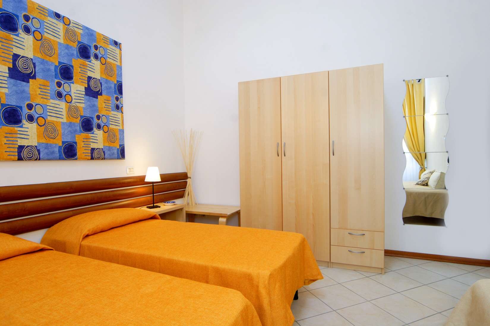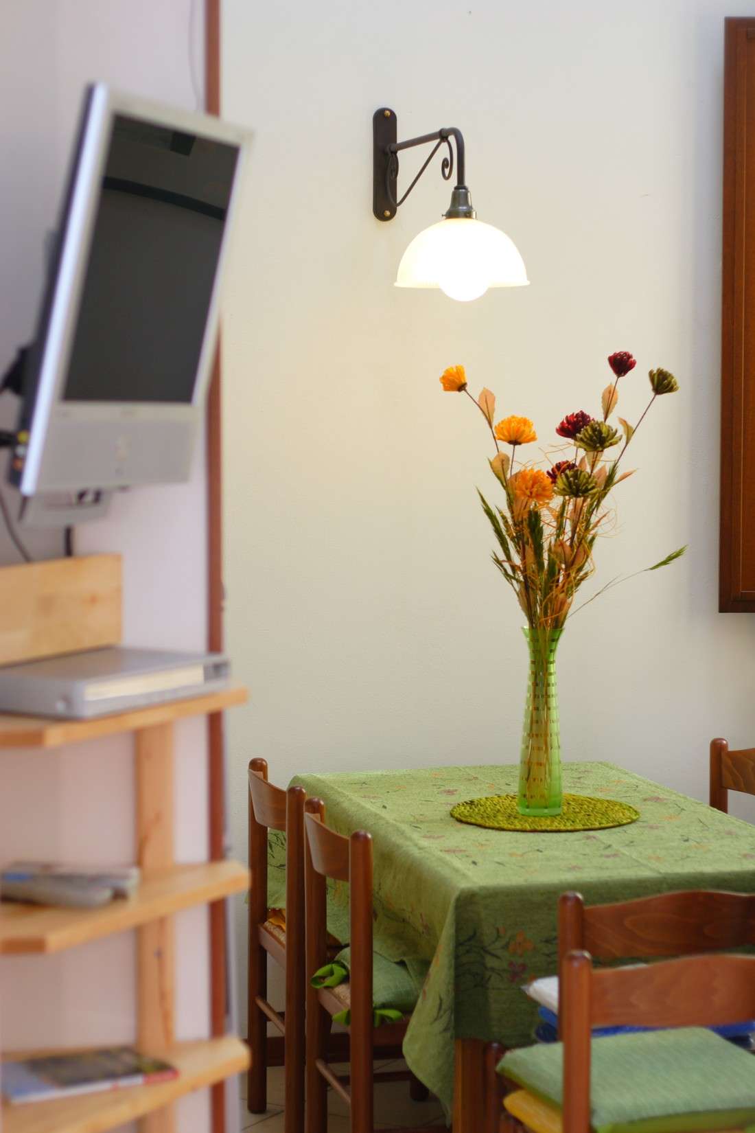 Entering the apartment you will appreciate the spaciousness, comfort and brightness. The ergonomic sofa with a mattress can be easily converted into a bed ready to go for two. The kitchen of highest quality in chestnut wood, complete with every comfort makes it warm and welcoming. The bedroom is equipped with a spacious birch wood wardrobe and is very versatile in the layout of beds ( two single beds, or a double bed ), with the possibility to add an extra bed. There is also a nice and bright relax area with sofa and armchair, perfect for a short rest at the end of the day. A large bathroom with a shower with glass doors and a blue sea ceramic floor, enriches and completes the furnishing of the apartment.
