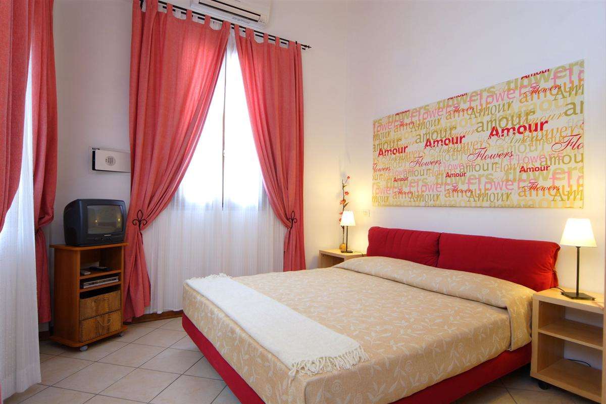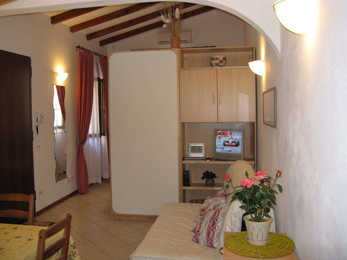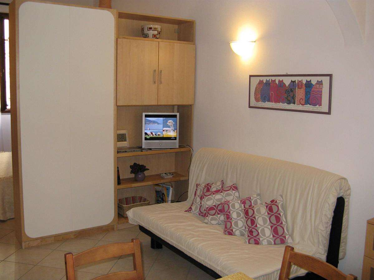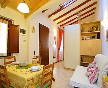 The front door enters directly into the spacious living area, the kitchen of highest quality in chestnut wood, complete with every comfort, makes it warm and welcoming. The confortable couch can be easily converted into a bed ready to go for two. In the sleeping area there is a large double bed with an upholstered headboard and a birch wood wardrobe. The bathroom with a shower with glass doors and a blue sea ceramic floor, enriches and completes the furnishing of the apartment.