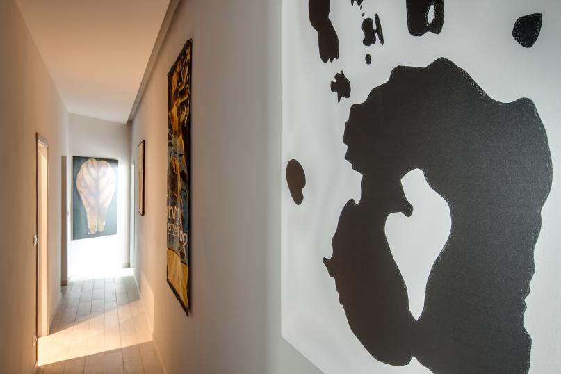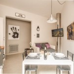 The very entrance to the apartment has been decorated with prints and paintings: climbing three steps you’ll reach the apartment’s doorway.