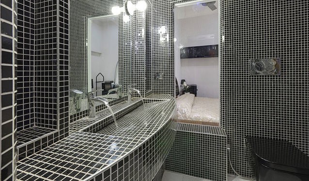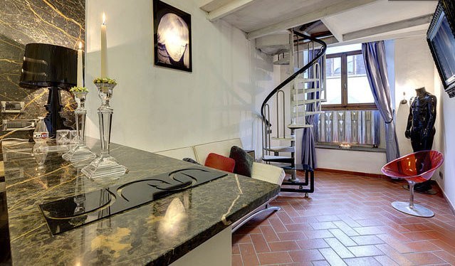 Is the perfect place for those who are sensible to love,music and fashion.Is different from any ordinary place. Lovers can watch each other from the bed to the shower and vice-versa. Shower and the rest of apartment has hi-fi speakers controlled by your iphone/ipad/smartphone and 4 people can take the shower together !