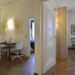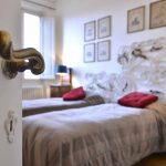 This building comes with several apartments list is coming up shortly and this is the top floor level apartment, cozy and well equipped sleeps 4 people. Three rooms 65 m2 apartment, on the third floor with elevator of the main building, on he very top floor. It consists in a little sitting and dining room with fully equipped kitchen area, large and bright double bedroom with double bed, twin bedroom, 1 bathroom with shower. Very well furnished, parquet, high ceiling, roof terrace in common with another apartment