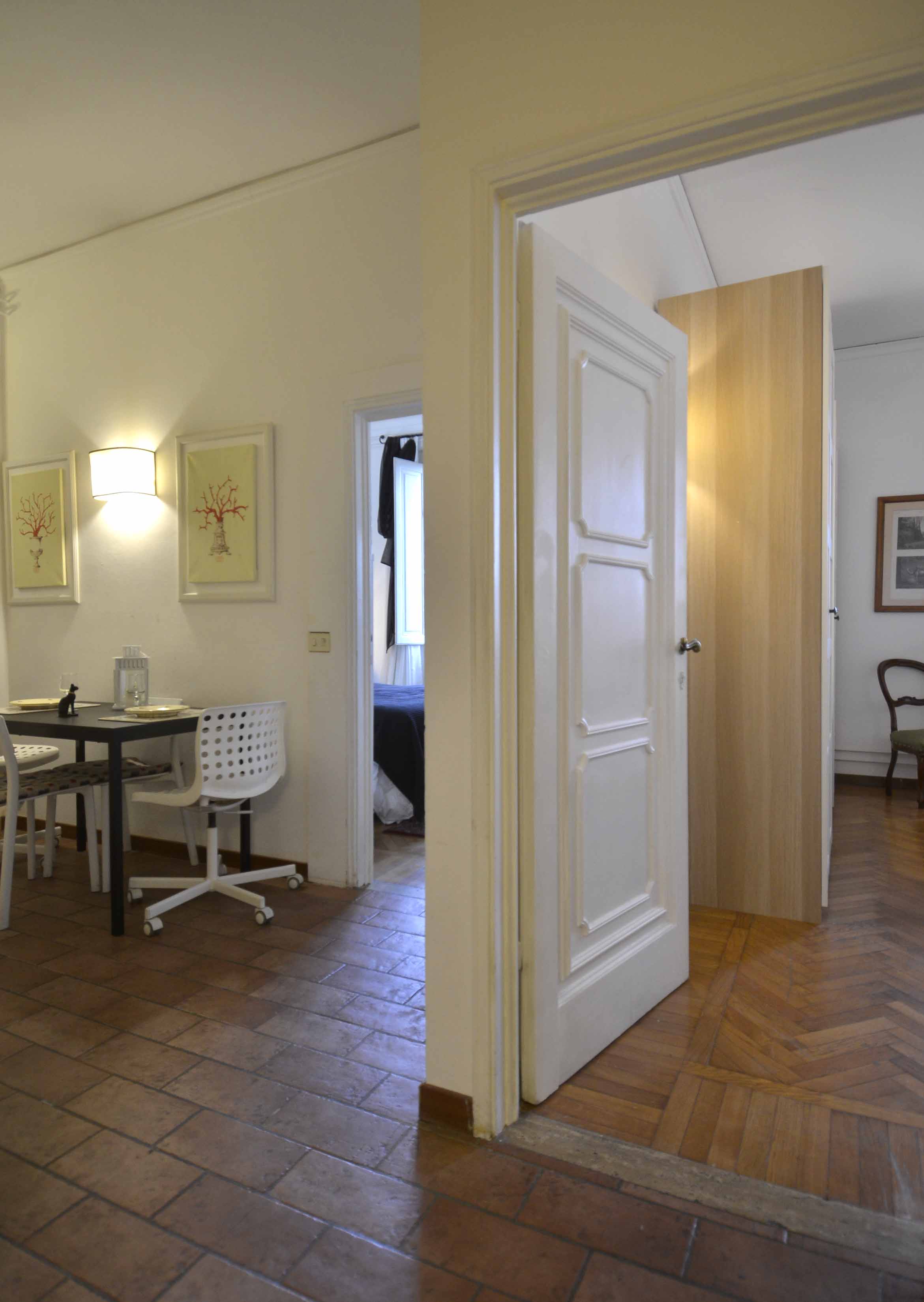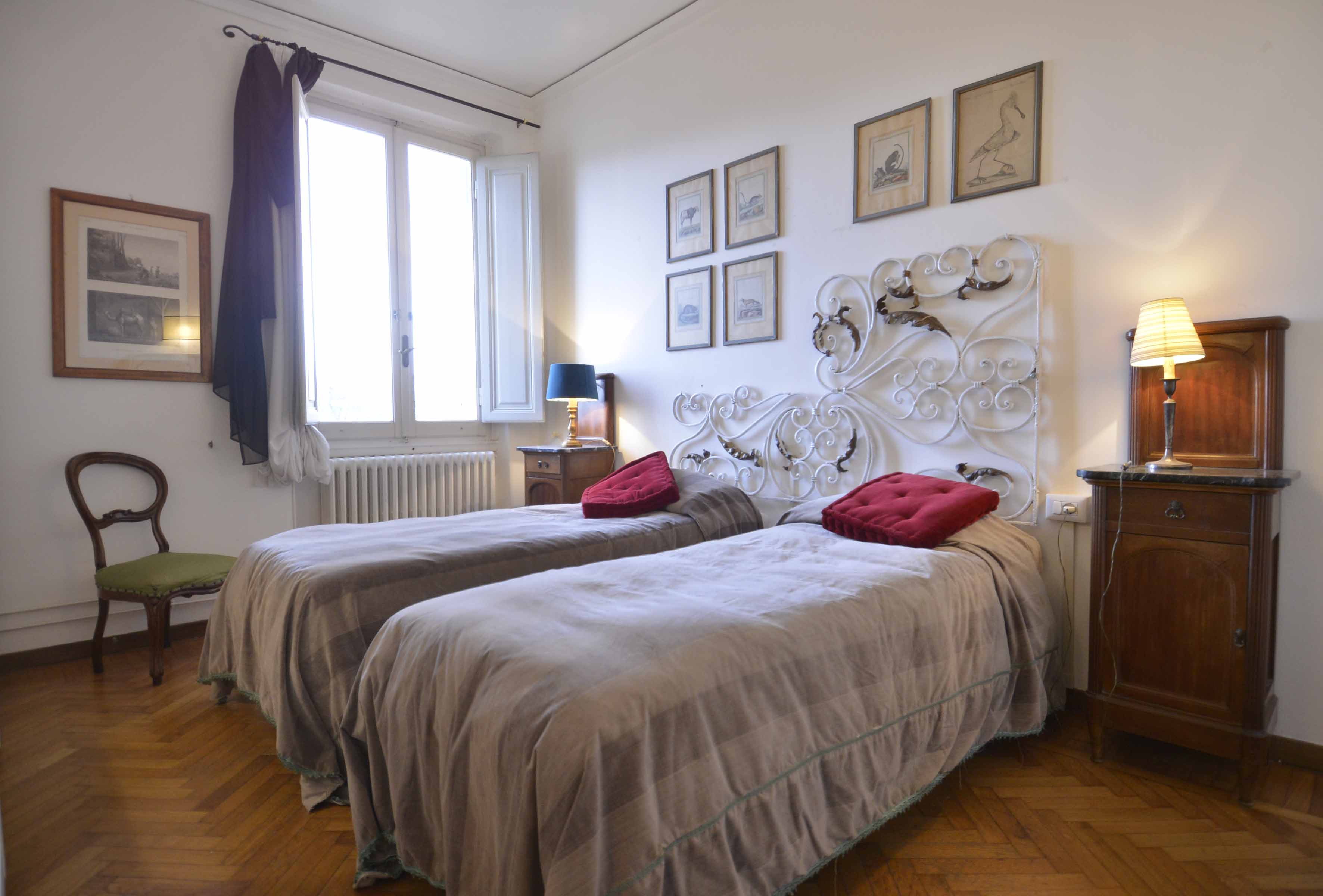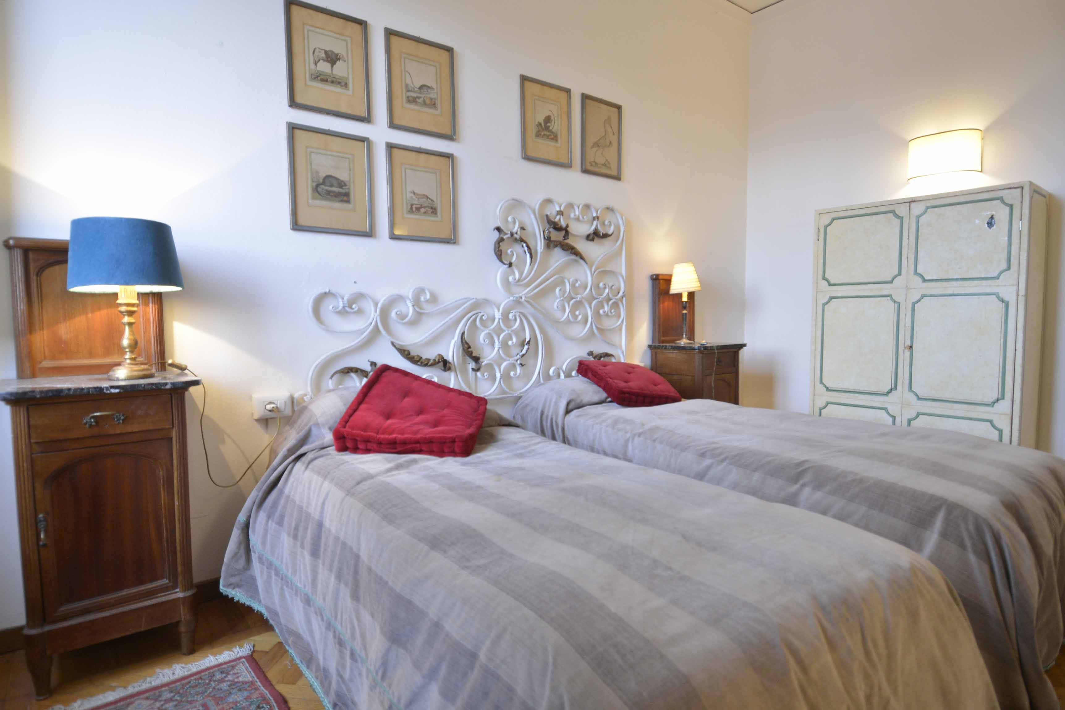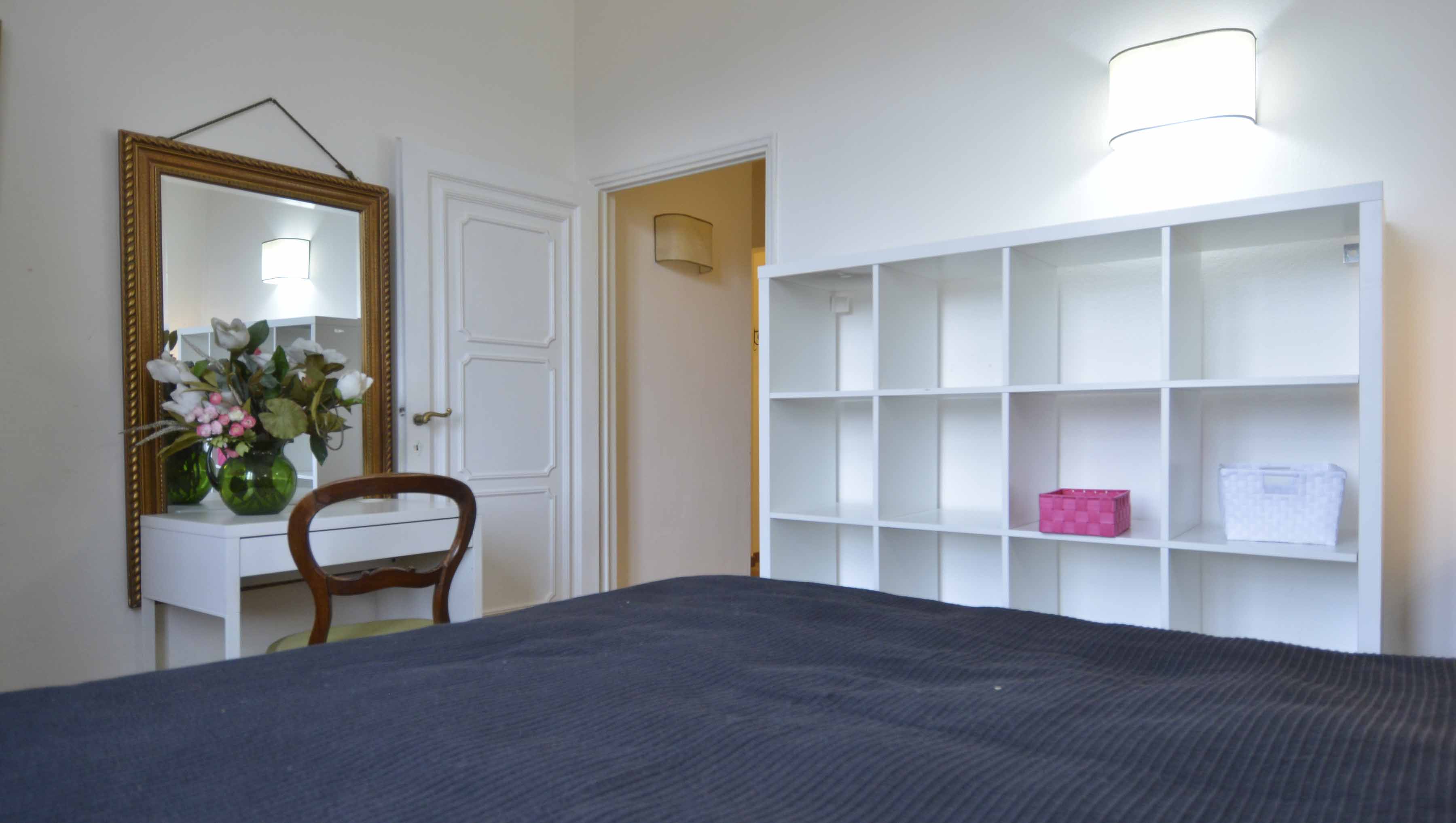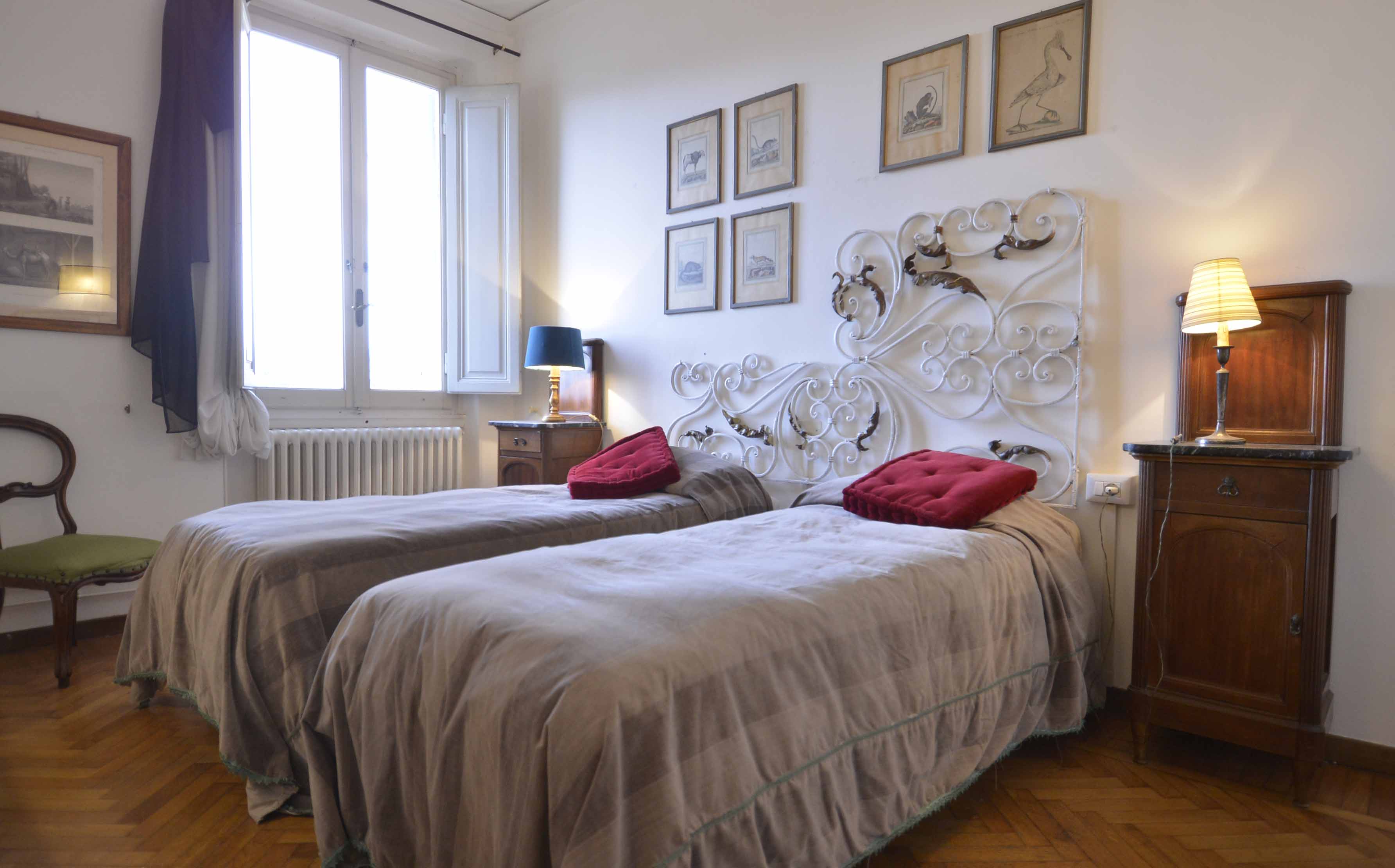 This building comes with several apartments list is coming up shortly and this is the top floor level apartment, cozy and well equipped sleeps 4 people. Three rooms 65 m2 apartment, on the third floor with elevator of the main building, on he very top floor. It consists in a little sitting and dining room with fully equipped kitchen area, large and bright double bedroom with double bed, twin bedroom, 1 bathroom with shower. Very well furnished, parquet, high ceiling, roof terrace in common with another apartment