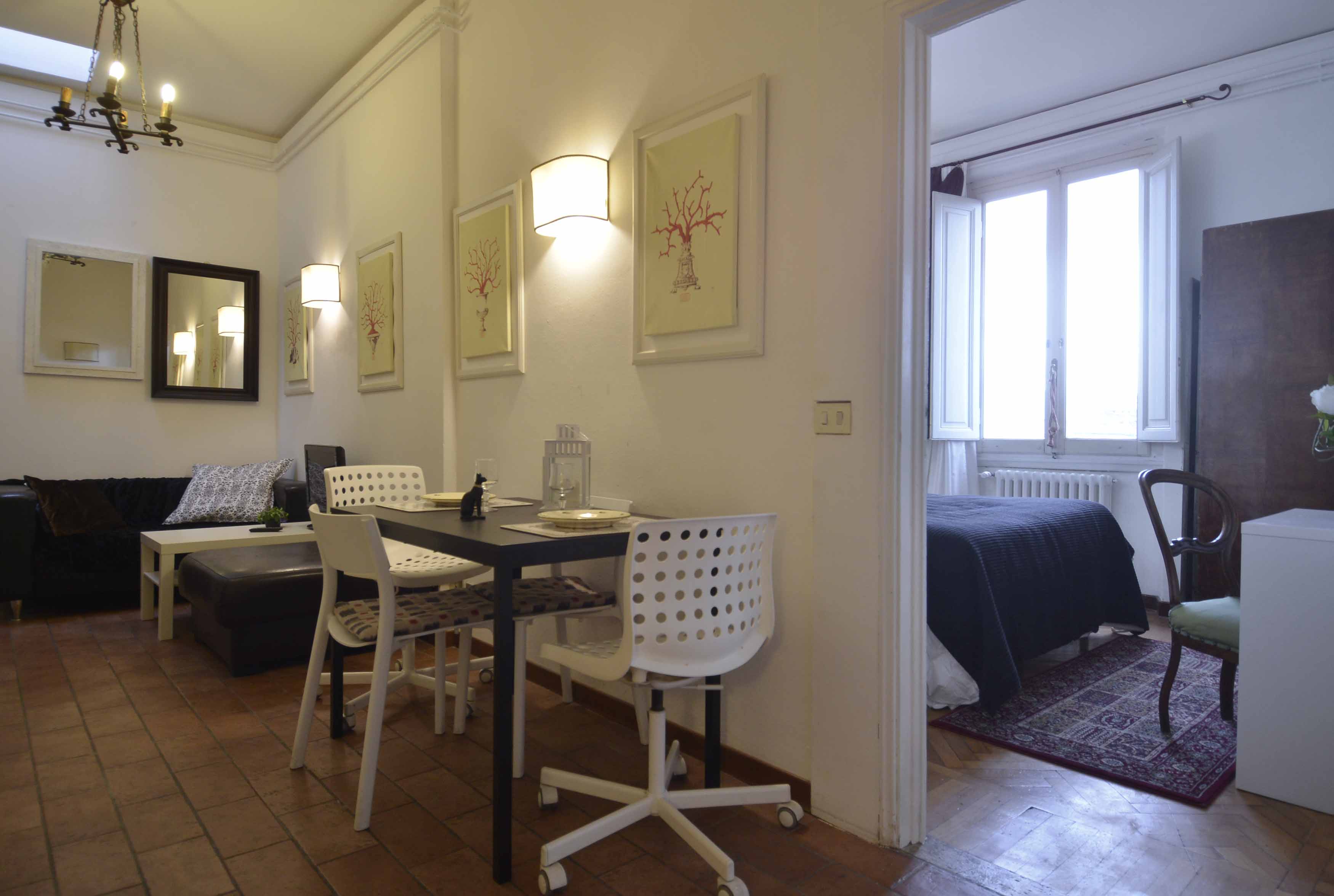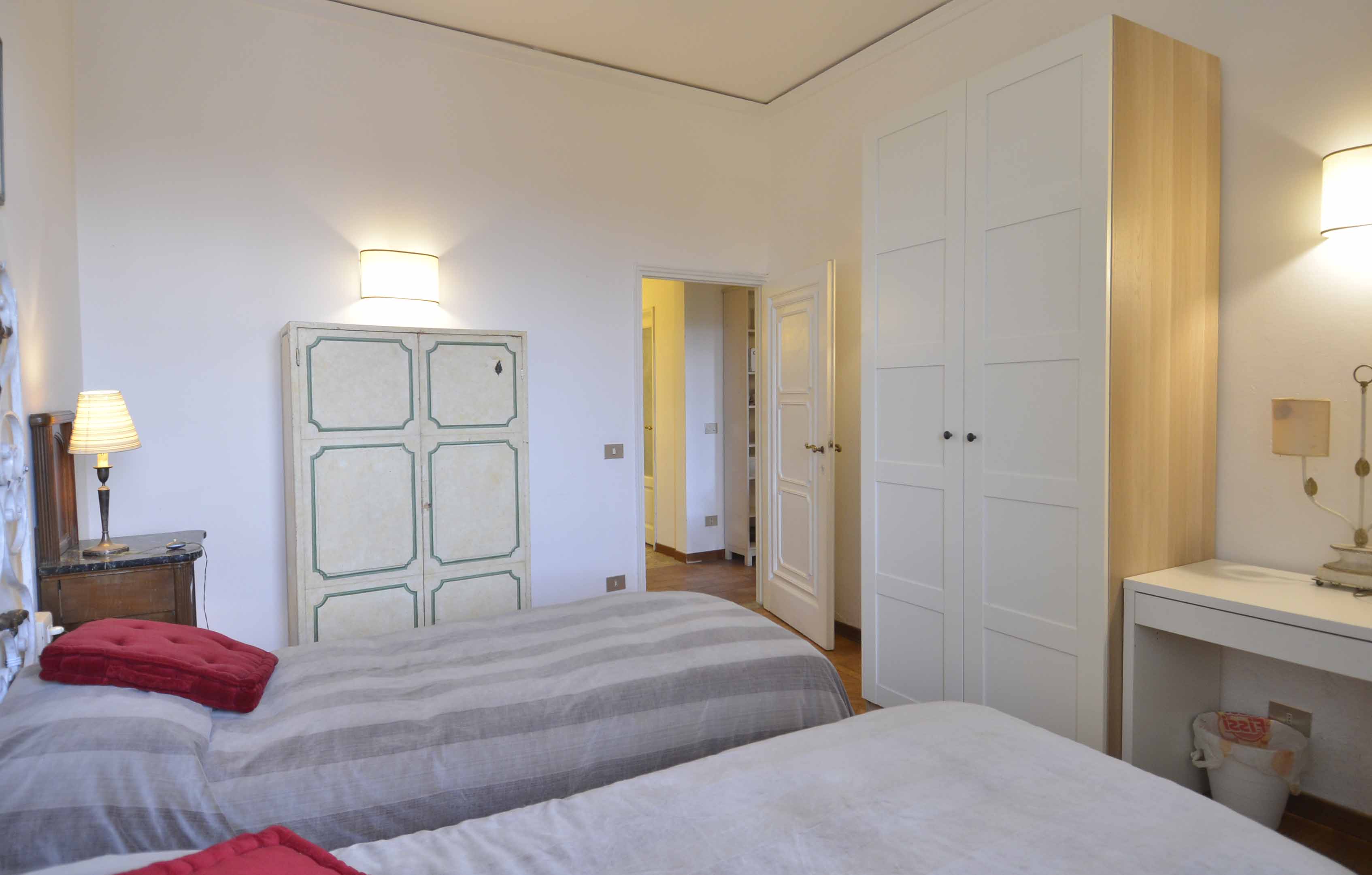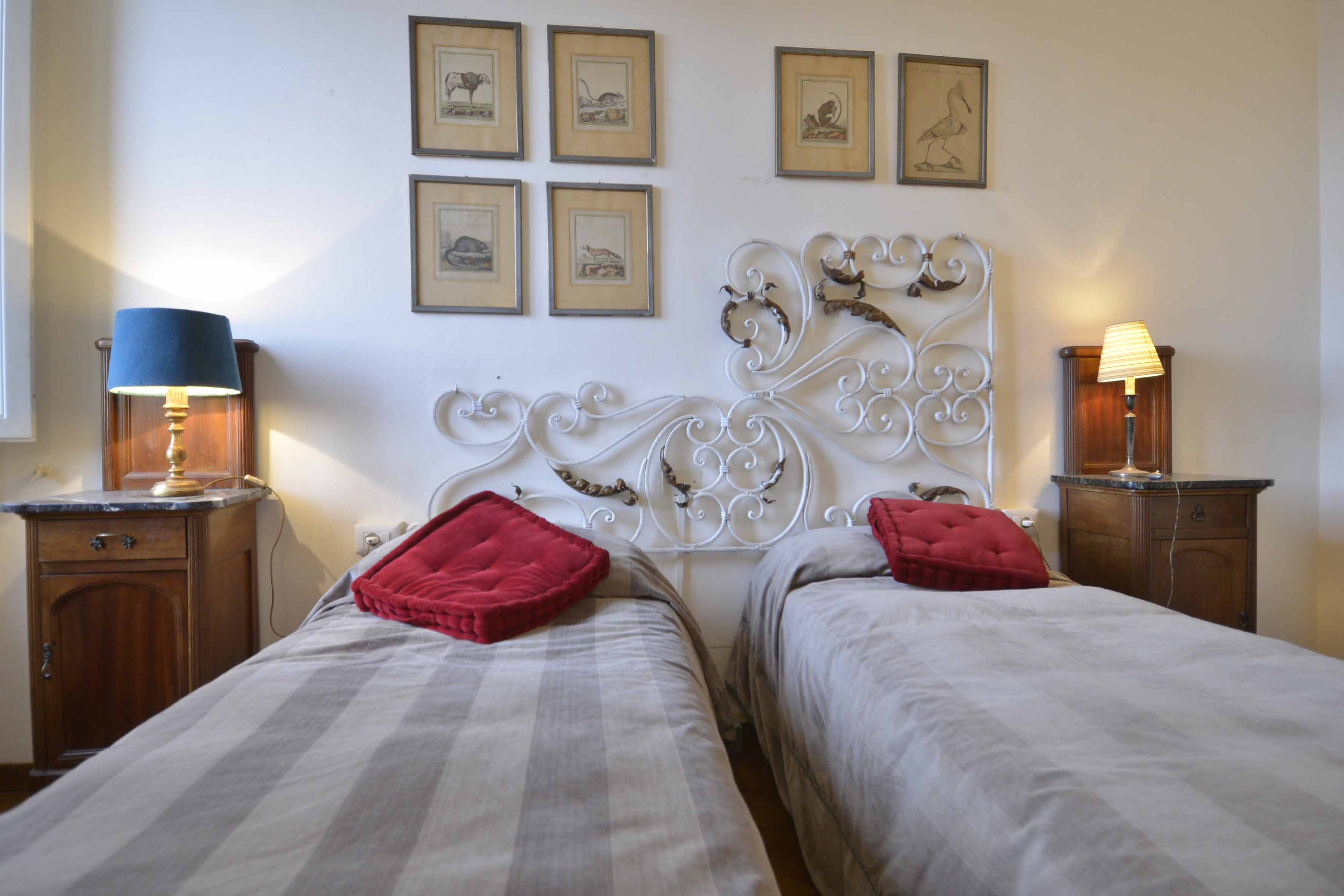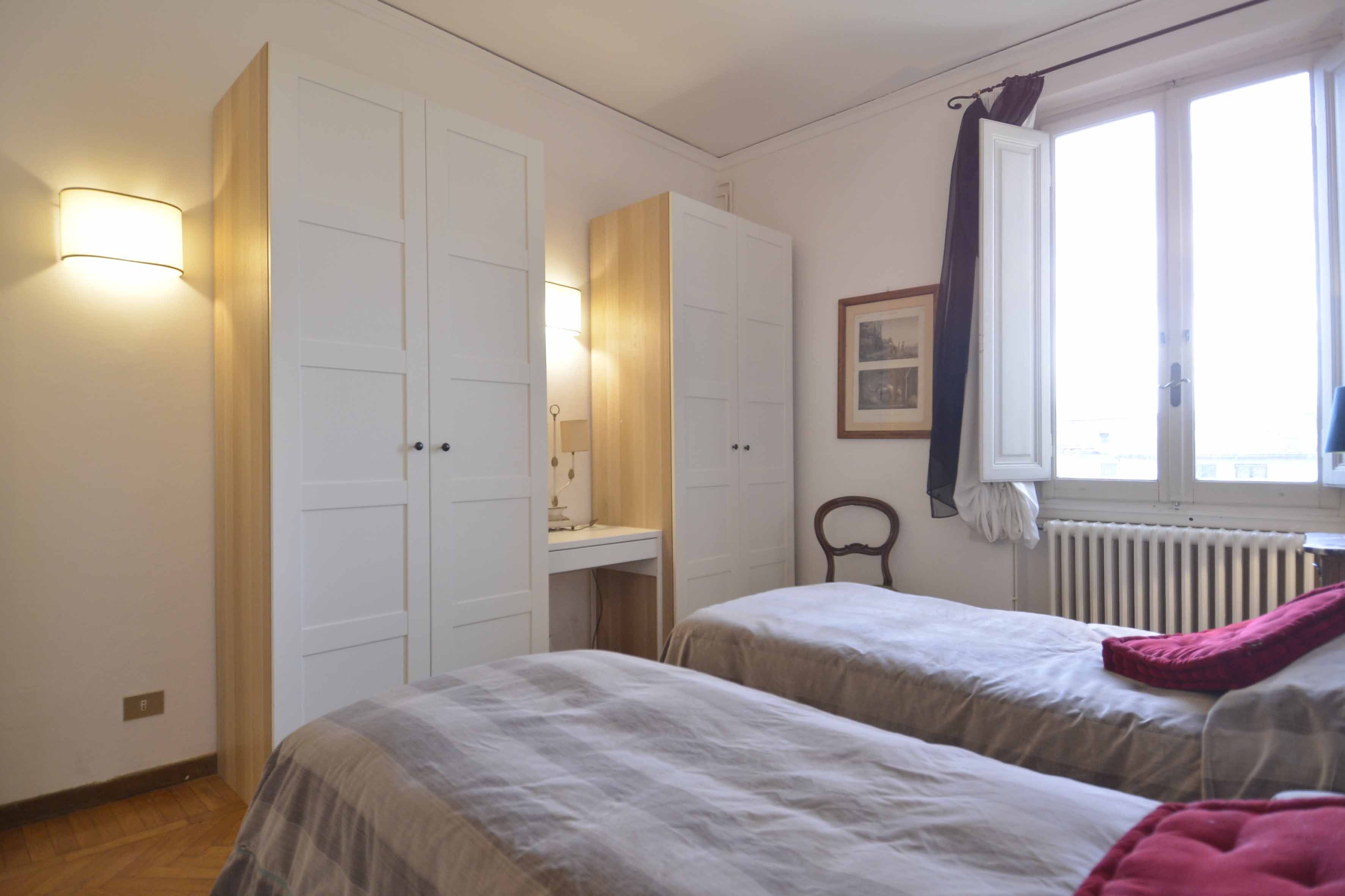This building comes with several apartments list is coming up shortly and this is the top floor level apartment, cozy and well equipped sleeps 4 people. Three rooms 65 m2 apartment, on the third floor with elevator of the main building, on he very top floor. It consists in a little sitting and dining room with fully equipped kitchen area, large and bright double bedroom with double bed, twin bedroom, 1 bathroom with shower. Very well furnished, parquet, high ceiling, roof terrace in common with another apartment