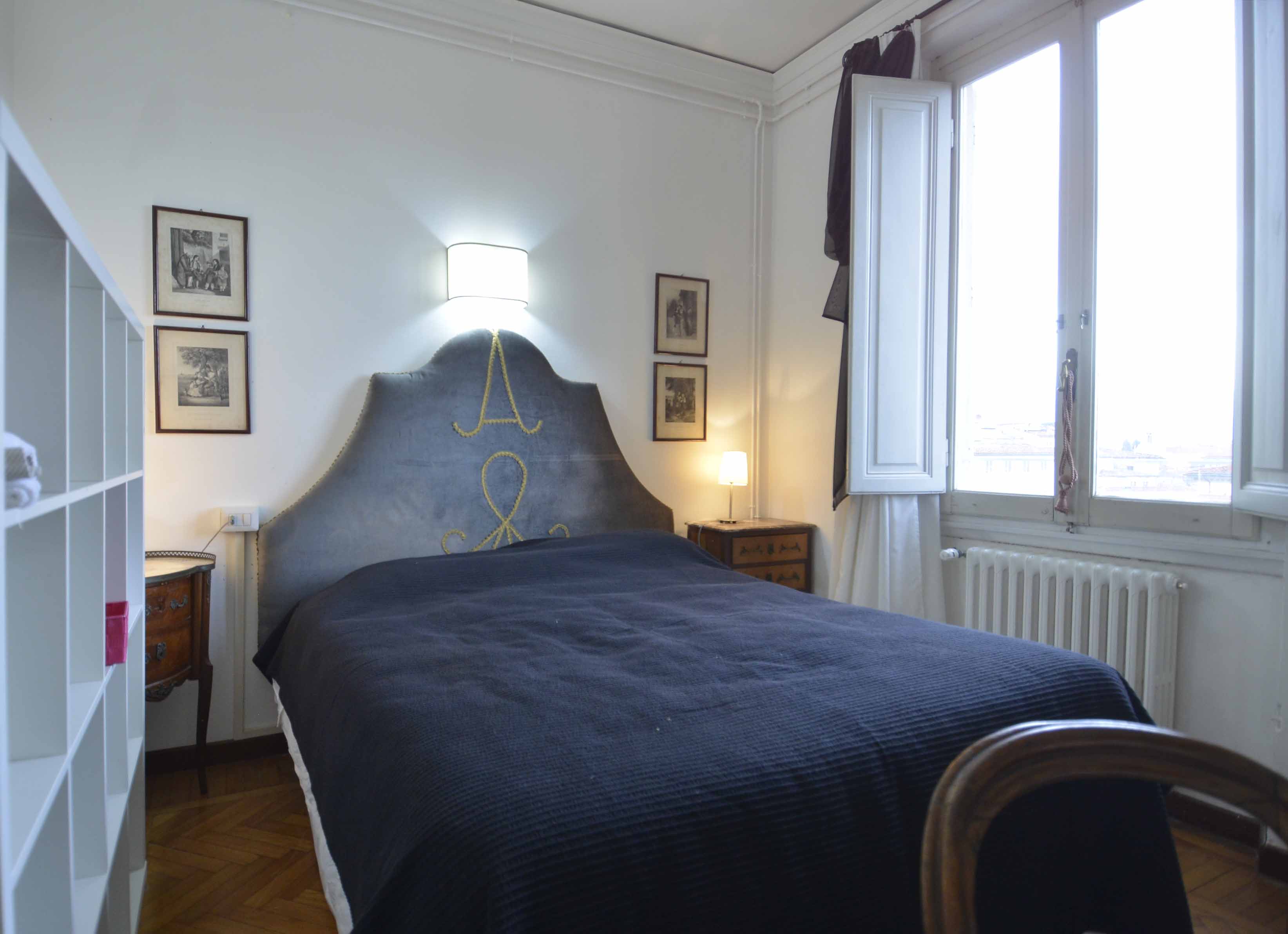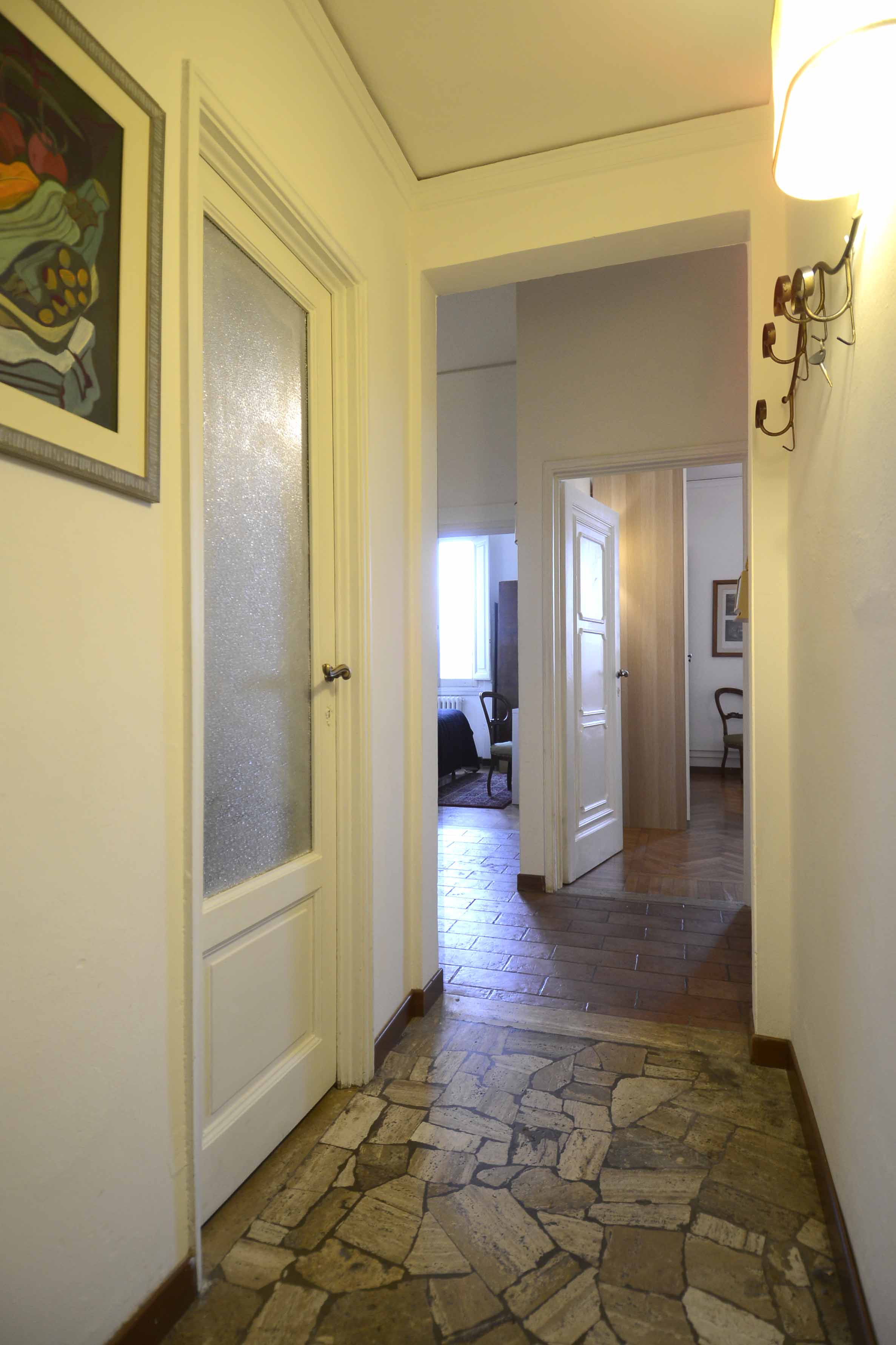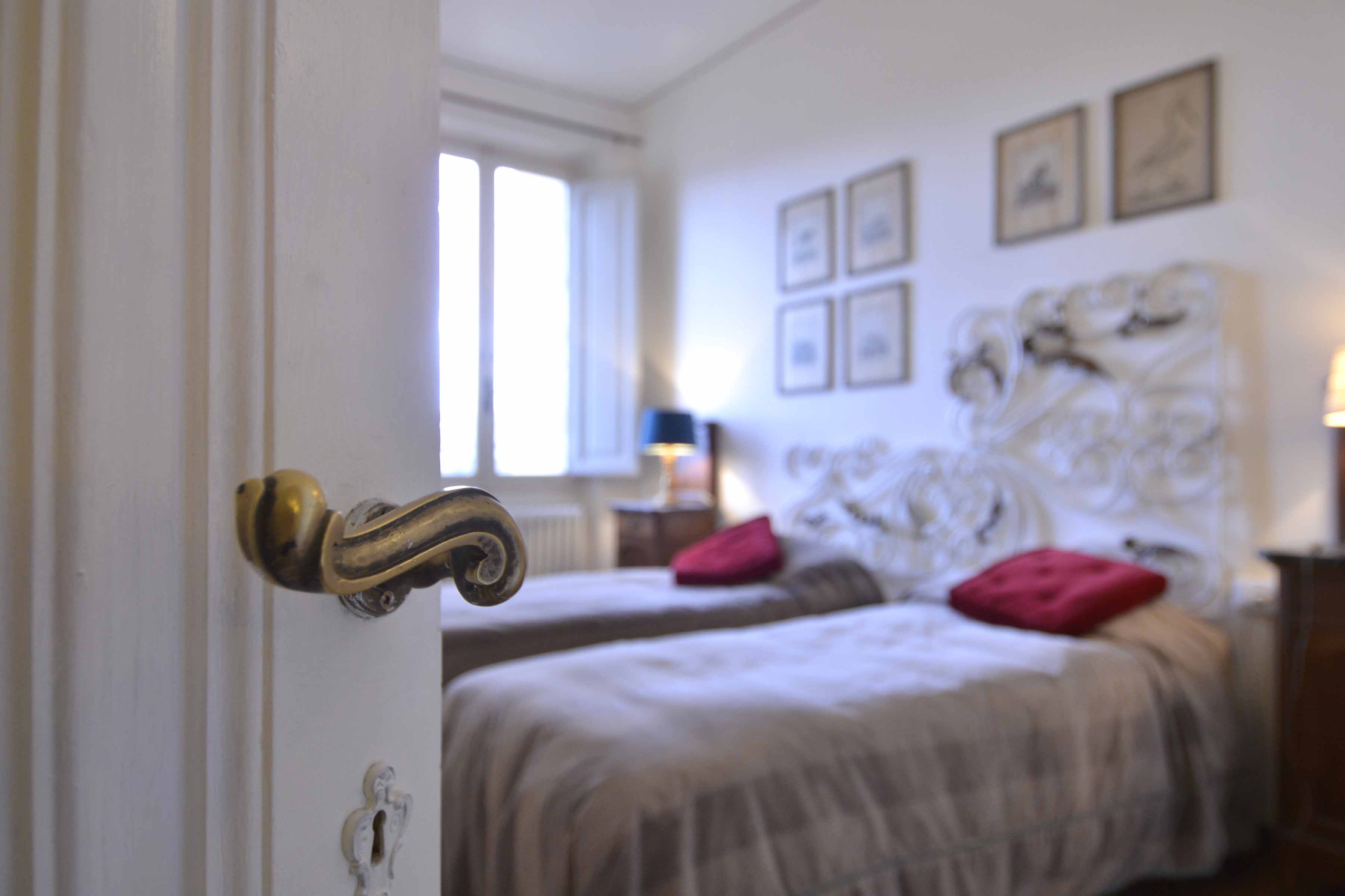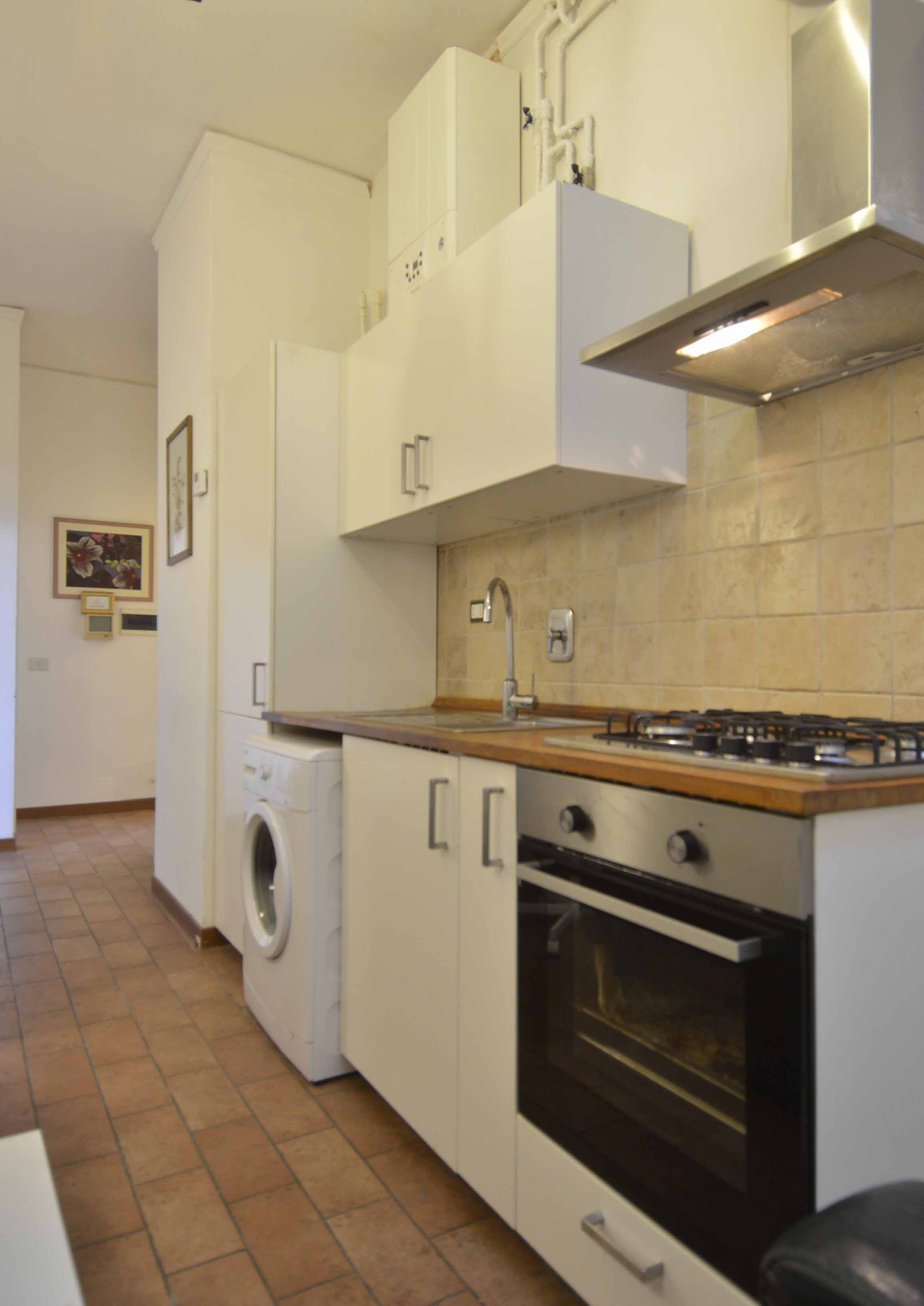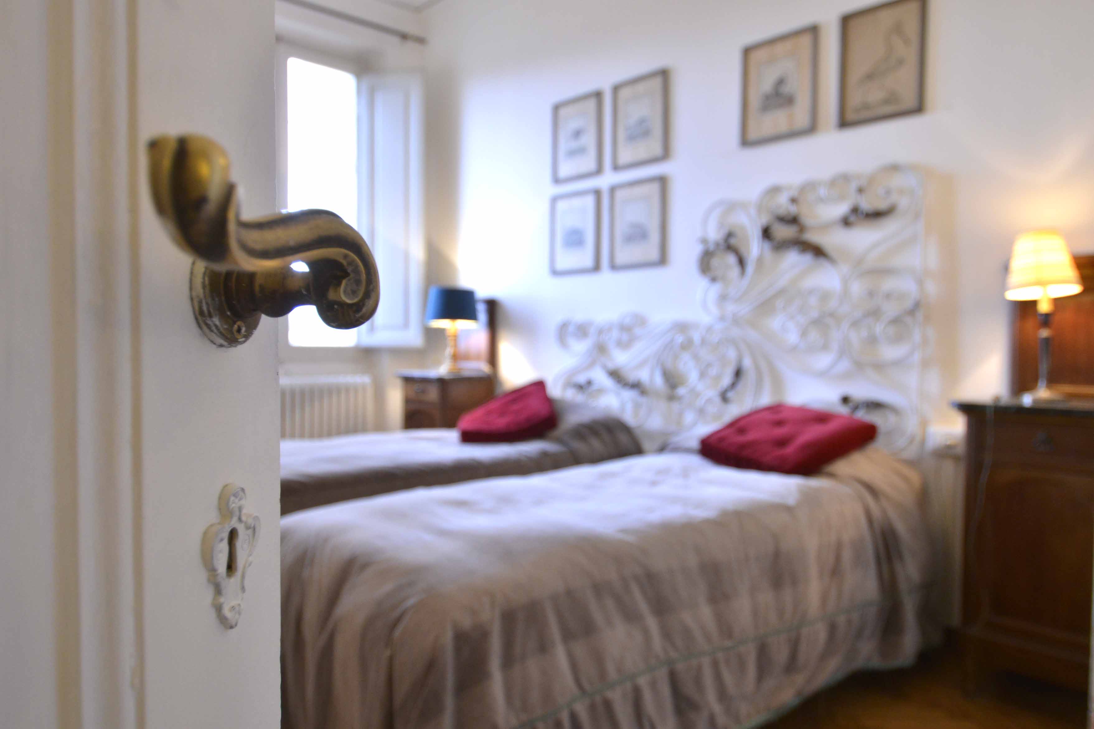 This building comes with several apartments list is coming up shortly and this is the top floor level apartment, cozy and well equipped sleeps 4 people. Three rooms 65 m2 apartment, on the third floor with elevator of the main building, on he very top floor. It consists in a little sitting and dining room with fully equipped kitchen area, large and bright double bedroom with double bed, twin bedroom, 1 bathroom with shower. Very well furnished, parquet, high ceiling, roof terrace in common with another apartment
