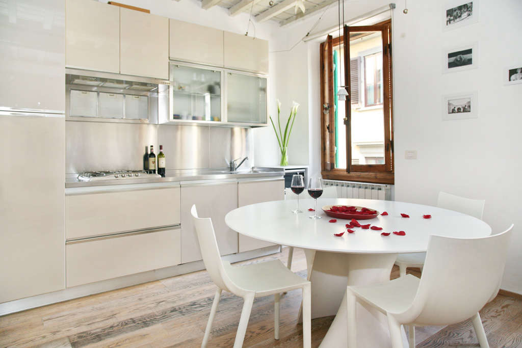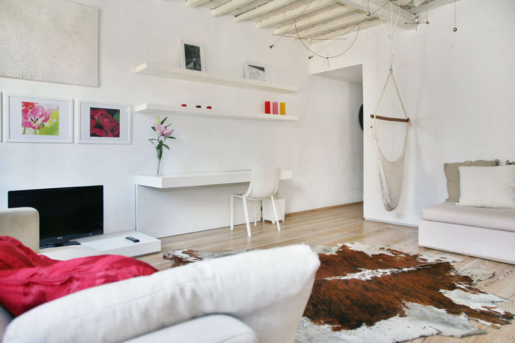 White Suite is a really spacious and full of light apartment suite, located on the second floor (36 easly steps without lift) of a characteristic florentine buiding. The apartment is located in Oltrarno, the nice area of Porta Romana, located just few steps from the very famous Boboli Gardens, 10 minutes walk from Palazzo Pitti and only 15 minutes from Ponte Vecchio. All the area is surrounded by workshops and local restaurants where you can feel the typical sparkling atmosphere of Florence.It is the ideal accommodation for couples or families looking for a very spacious and sunny apartment.White Suite has got all comforts to let you enjoy your stay in total relax: It has got a very spacious living room, with a comfortable sofa, a fully furnished kitchen (stove, fridge, dishwasher, washing machine, oven, microwave oven) and a white design round table. There are two bedrooms: the master bedroom has got a king size bed and a blue wardrobe, while the second bedroom has got a single bed and a double sofa bed. All the bedrooms are really quite, facing up the green internal court.The bathroom has got a modern and charming shower.There is a useful closet where the washing machine is located.The apartment is extremely quite and peaceful.